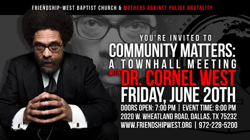 Join us for an important conversation on issues affecting Dallas and the Nation WITH Dr. Cornel West